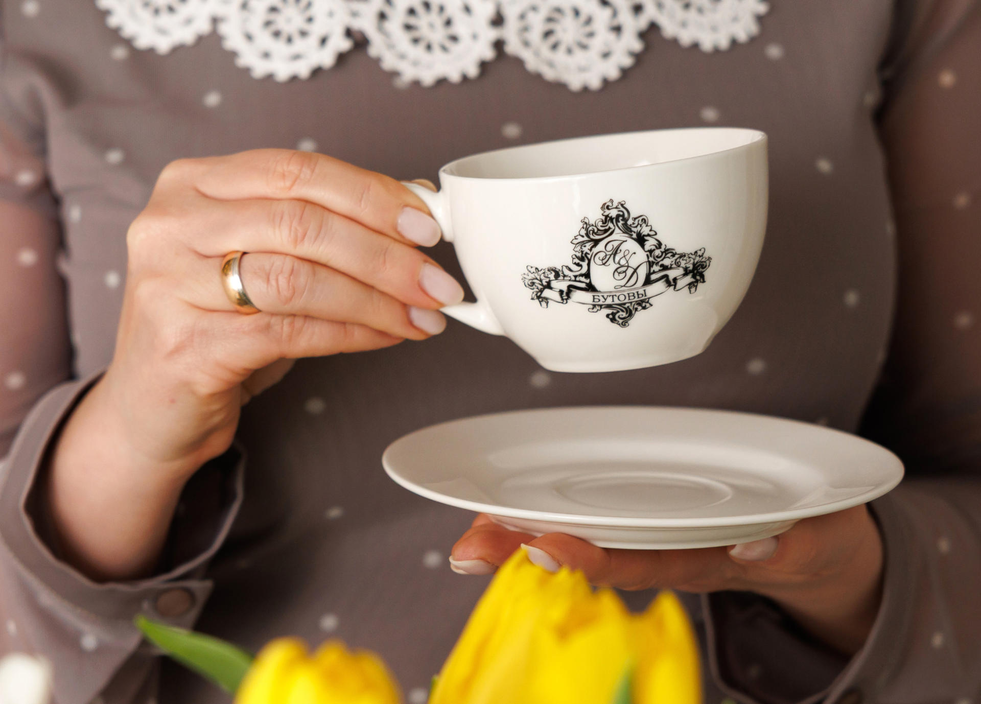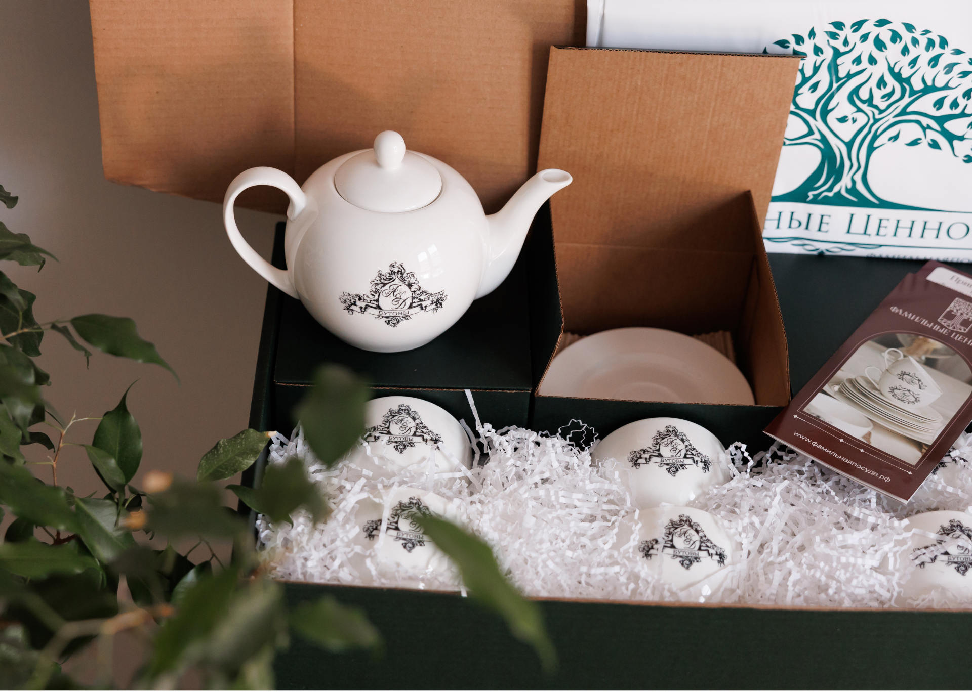В стоимость набора входит односторонняя печать на всех предметах, кроме блюдец, и фирменная подарочная упаковка.